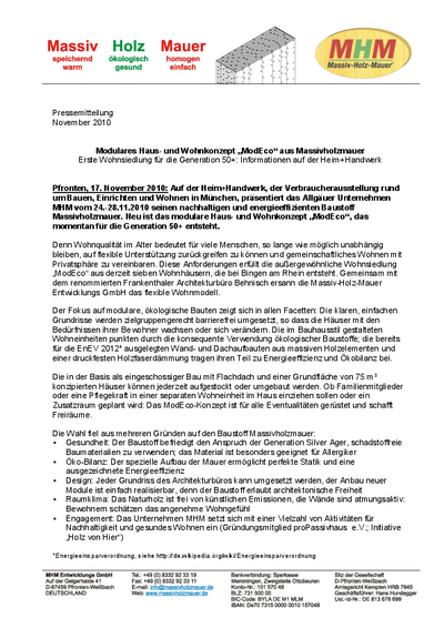 Press release MHM Heim&Handwerk, November 2010